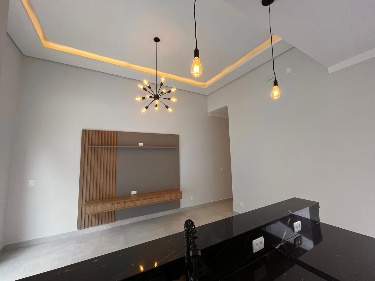Lindo projeto de iluminação com sanca de gesso, pendentes e LEDs